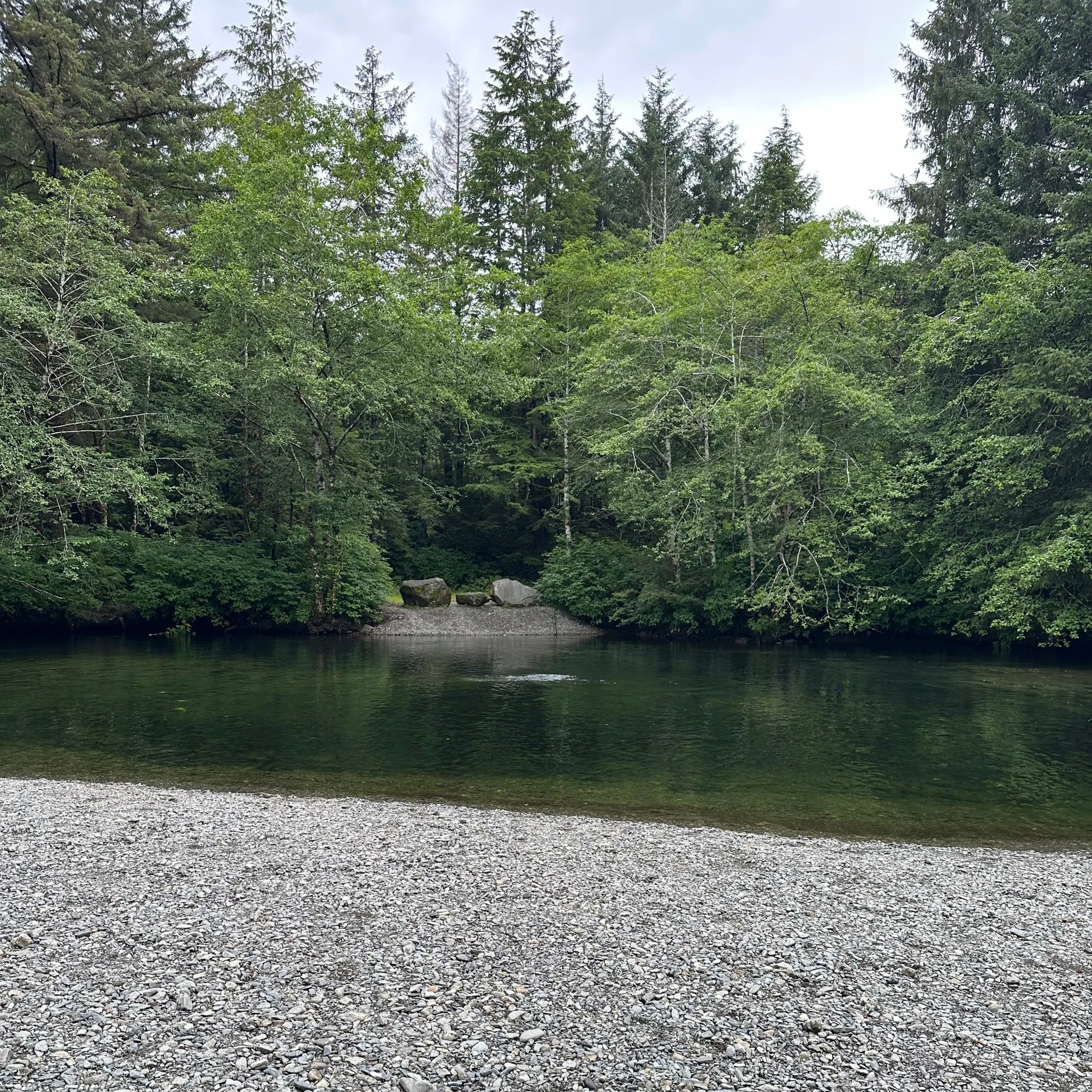 The darker patches in the water are the salmon. You can see some jumping in the middle.
